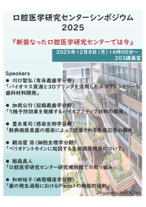 (2025年12月8日)口腔医学研究センターシンポジウムを開催します